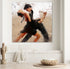 In the painting titled "Swirling Partners," a mesmerizing display of movement and grace unfolds before our eyes. The canvas is alive with a symphony of vibrant colors, swirling forms, and a palpable sense of rhythm. This captivating artwork transports us to a world where music and dance intertwine, evoking joy and celebration. At the center of the composition, two figures are locked in an elegant dance embrace. Their bodies, depicted with fluid lines and gentle curves, are a study of harmony and balance. The artist captures the energy and passion of the moment, conveying the effortless connection between the dancers as they move as one. Their movements seem to defy gravity, as they twirl and spin with ethereal grace.